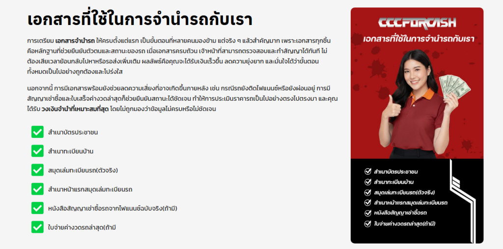 หลายคนที่เคยลองจำนำรถกับที่อื่น แล้วมาใช้บริการ CCCCarCash ต่างพูดเหมือนกันว่า “น่าจะรู้จักที่นี่ตั้งแต่แรก” เพราะทุกขั้นตอนชัดเจน ได้เงินเร็ว และมีทีมงานดูแลตั้งแต่ต้นจนจบ ทำให้รู้สึกอุ่นใจเหมือนฝากรถไว้กับเพื่อนที่ไว้ใจได้จริง ๆ
